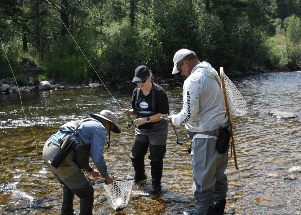 Our Aug. 9 outing at Lincoln Hills Fly Fishing Club started with the basics of catch-and-release fishing thanks to our expert instructors from Front Range Anglers. In mere minutes, guests attending from Craig Hospital and its Operation TBI Freedom treatment program designed for military veterans, cracked our their rods and paired up with guides for a fun morning of fishing the South Boulder Creek.